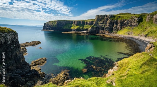 Tranquil Bay Surrounded by Rocky Hills under Blue Sky