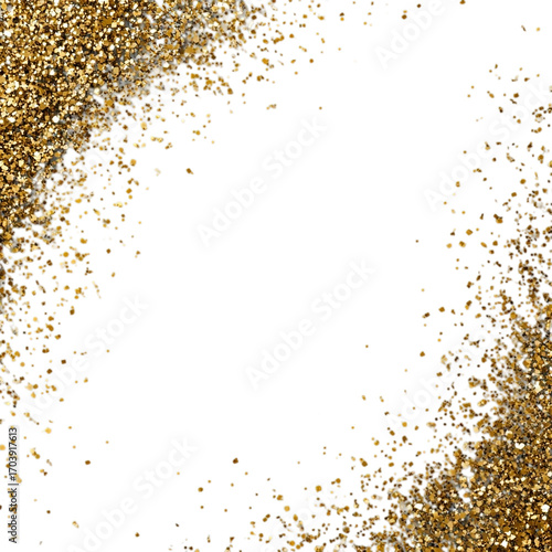 Transparent Background Golden Glitter Particles at Corners, Minimalist Composition with Vast White Space, Plain and Luxurious Style