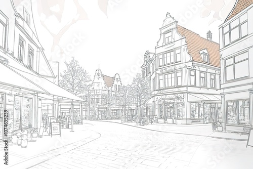 Travel sketch of Rothenburg ob der Tauber, Germany. Urban sketch in black color isolated on white background.