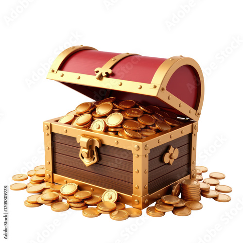 Treasure chest overflowing with gold coins.