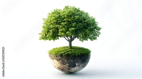 Tree Grows on Earth Globe: Eco-Friendly Planet