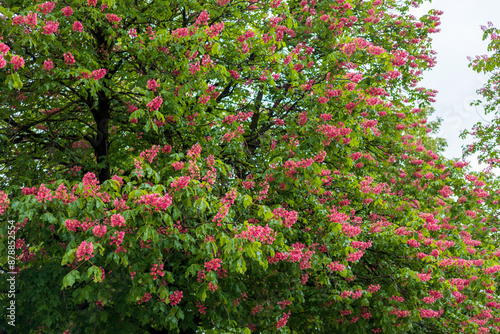Tree with Lush Pink Blossoms in Full Bloom