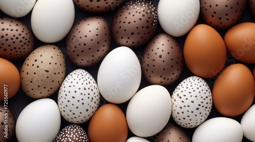 Trendy background made of various white and brown Easter eggs