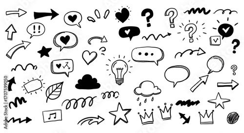 Trendy hand drawn doodle icons, modern vector elements ideal for creative designs and artistic illustrations