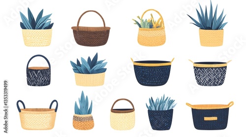 Trendy Woven Wicker Baskets Set for Stylish Interior Design Displays