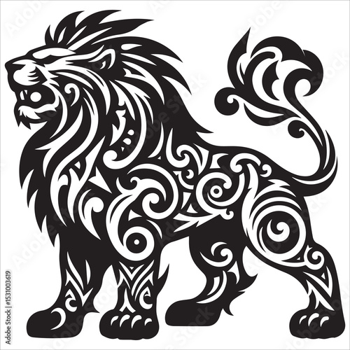 Tribal Lion Silhouette Vector,Tiger Silhouette line art vector illustration on white background,Lion head silhouette vector art illustration