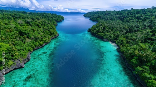 Tropical Island Lagoon Aerial View Turquoise Water Lush Green Forest Paradise Beach