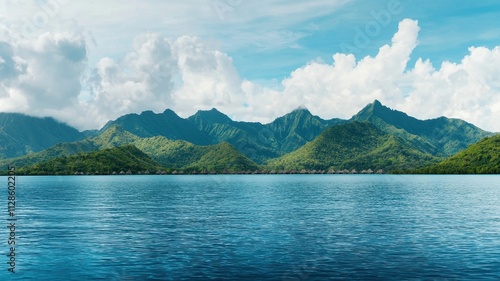 Tropical Island Paradise Turquoise Lagoon Lush Mountains Overwater Bungalows