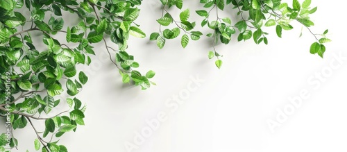 Tropical tree with branches and leaves on a plain white background for a green foliage copy space image