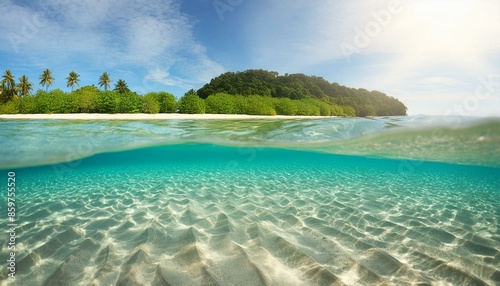 Tropisches Abenteuer: Unterwasseraufnahme mit Himmel und Insel