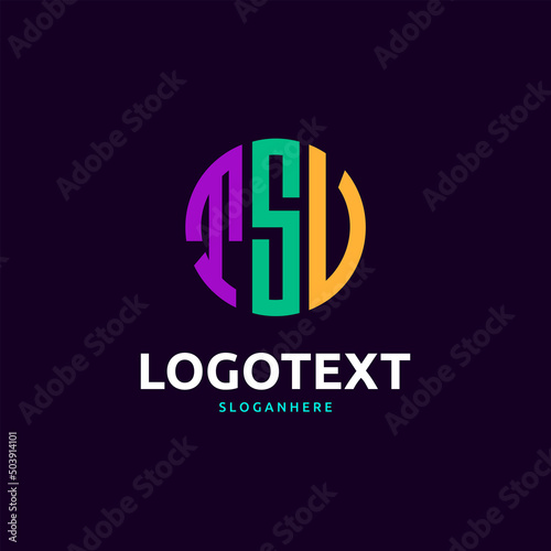 Tsv Monogram logo, Tsv Circle font, Round monogram Tsv letters, three letters logo