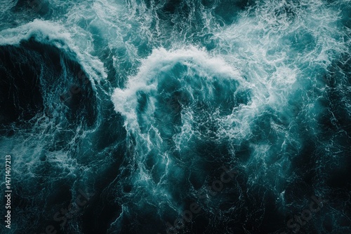 Turbulent teal ocean waves from above
