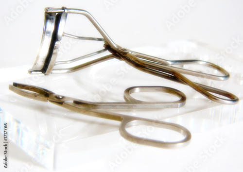 tweezer and eye lash curler on the glass tray