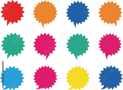 Twelve Assorted Colorful Starburst Speech Bubbles explosion shape