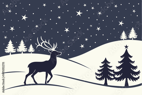Twinkling Stars and Reindeer Silhouette Vector Illustration