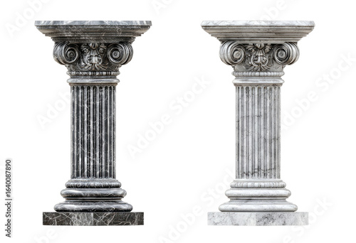 Two antique-style marble columns on pedestals