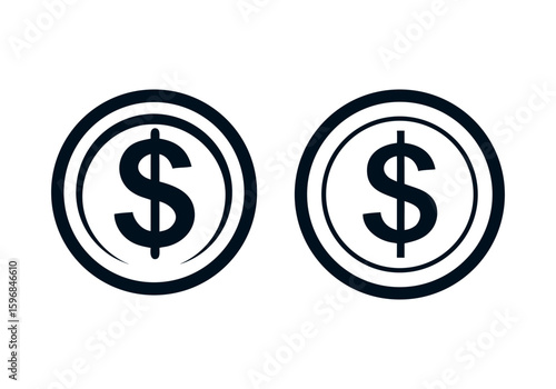 Two bold black dollar sign icons inside circular borders. Simple and clean design for representing currency, cost, pricing or economy.