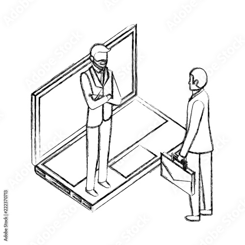 two businessman with laptop computer device