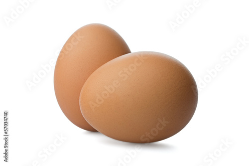 Two Chicken Brown eggs on white background
