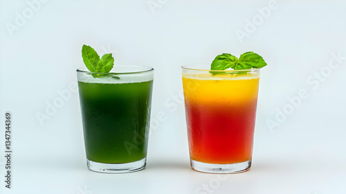 Two Colorful Refreshing Juices In Glasses