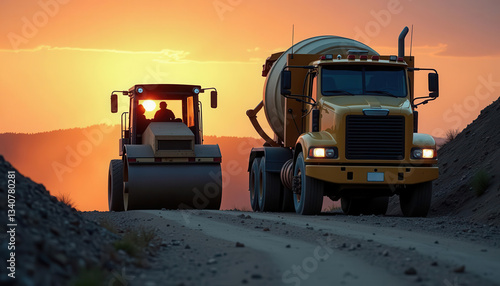 Two construction vehicles work together at sunset, highlighting the importance of machinery in modern construction.