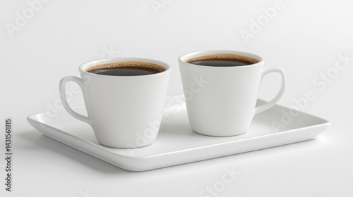 Two cups with a coffee drink on a white saucer and a plate on a white surface. generative ai