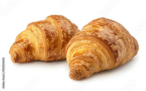 Two french croissant isolated on white background