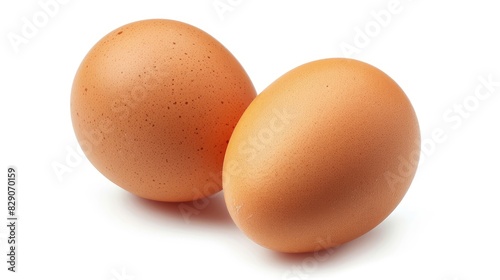 Two fresh eggs on a plain white background separated with a clipping path