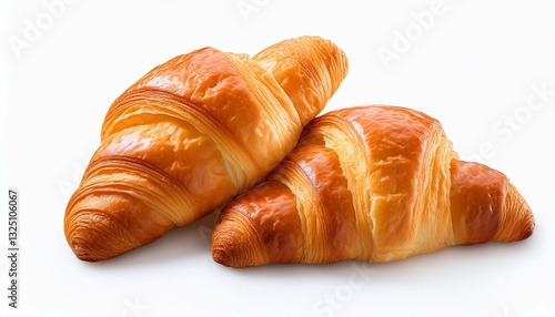 two freshly baked golden brown croissants with a flaky buttery texture isolated on a white background transparent background