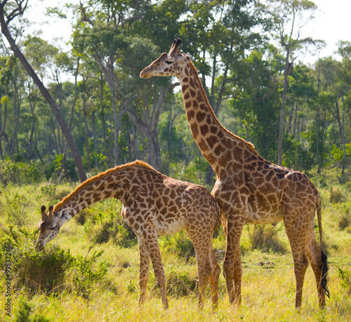 Two giraffes in savannah. Kenya. Tanzania. East Africa. An excellent illustration.
