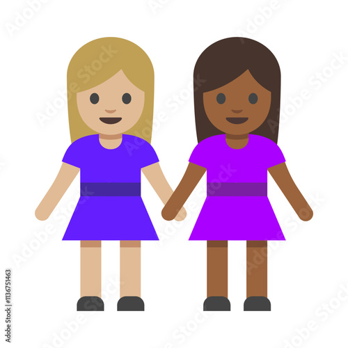 Two Girls Holding Hands Clipart Illustration | Friends or Siblings Isolated on White Background