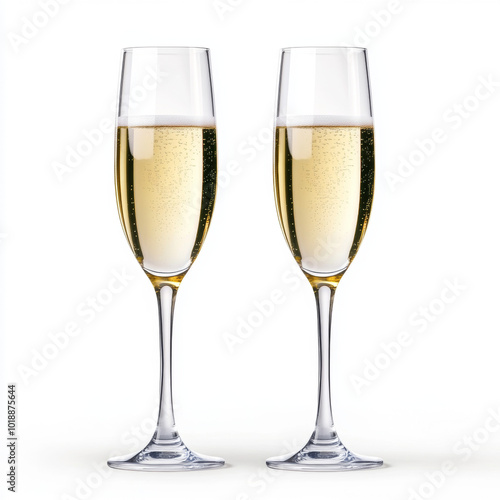 Two glasses of champagne on a white background