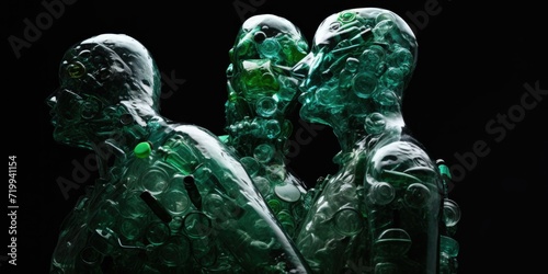 Two green plastic figures standing side by side. Suitable for various uses