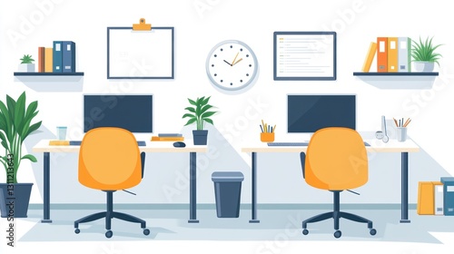 Two modern office workstations, clean and organized. Ideal for presentations, meetings, or general use in office context