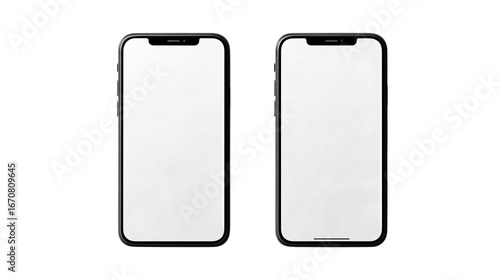 Two modern smartphones with blank screens ready for your app design