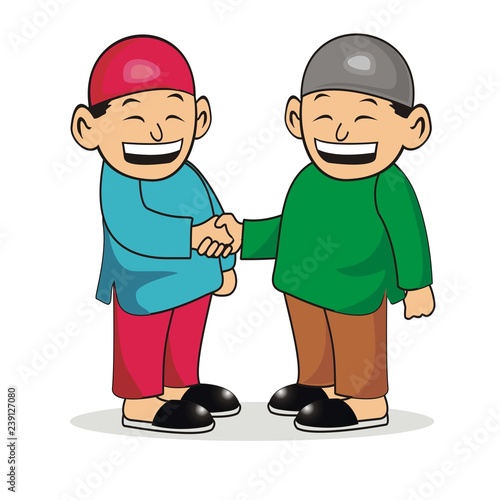 two Muslims are shaking hands. vector illustration.