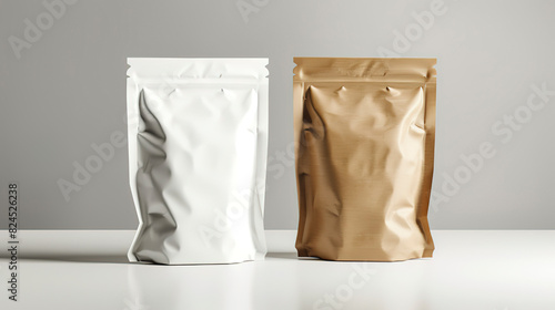 two packaging bags on gray background. Mockup template for design, print presentation mock up