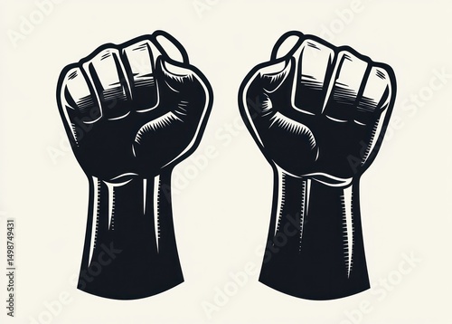 Two raised clenched fists illustrated in black and white symbolizing strength and solidarity