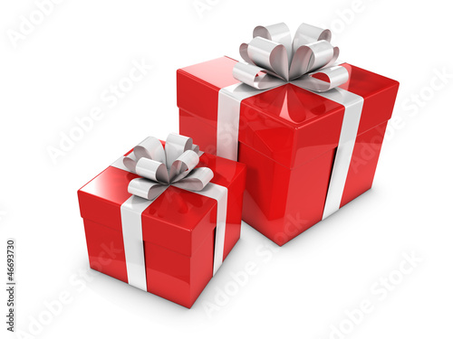 Two Red Gift Boxes with white bows and ribbons