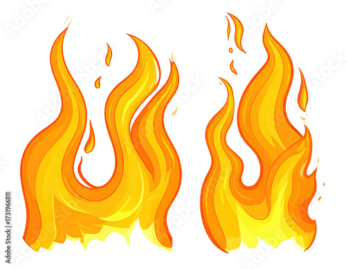 Two stylized flames, orange and yellow, on black background (1)