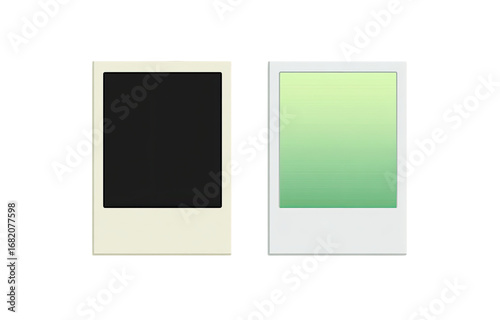 Two stylized instant photo frames, one dark, one light