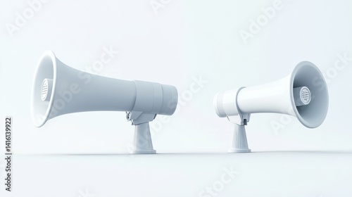 Two White Megaphones on White Background: A Minimalist Communication Concept