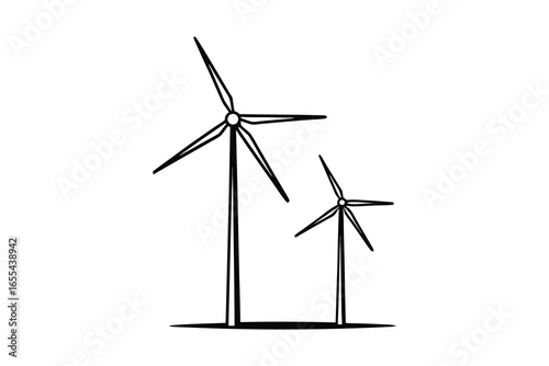 Two wind turbines silhouette isolated on white background