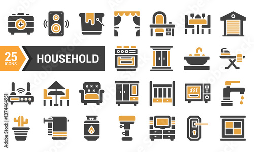 Two-Color Glyph Icons for Household Design.