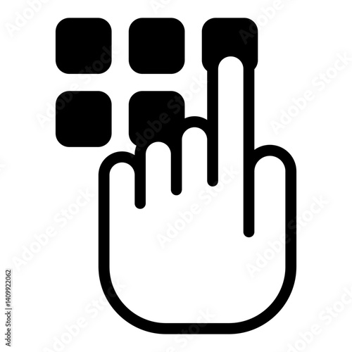 Typing pin code solid icon, data protection concept. Vector graphics. Hand pointer with buttons, input sign on white background, glyph style mobile or design.