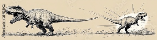 Tyrannosaurus rex and Carnivorous Dinosaurs in Vintage Comic Style Illustration