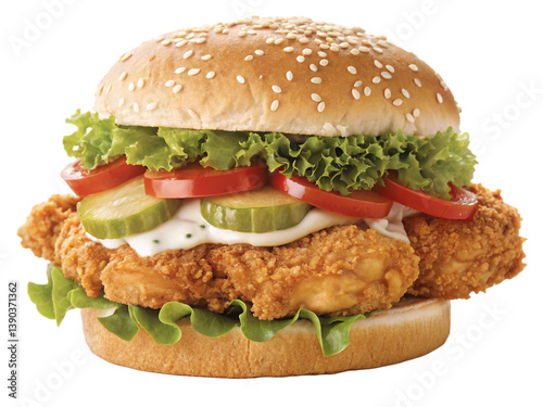 Ultimate Crispy Chicken Sandwich with Fresh Veggies and Pickles – Close-Up Burger Photography