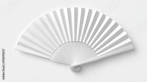 Ultra quality image of 3. Minimalist white folding fan mock-up on plain white background.
