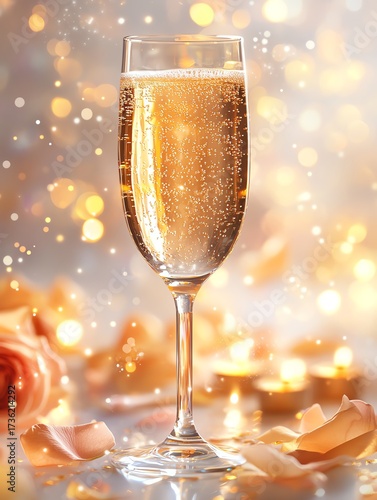 Ultradetailed macro fine art of a crystal champagne glass with golden bubbles rising