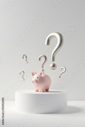 Uncertainties Surrounding Financial Savings A Piggy Bank and Question Marks on a White Platform